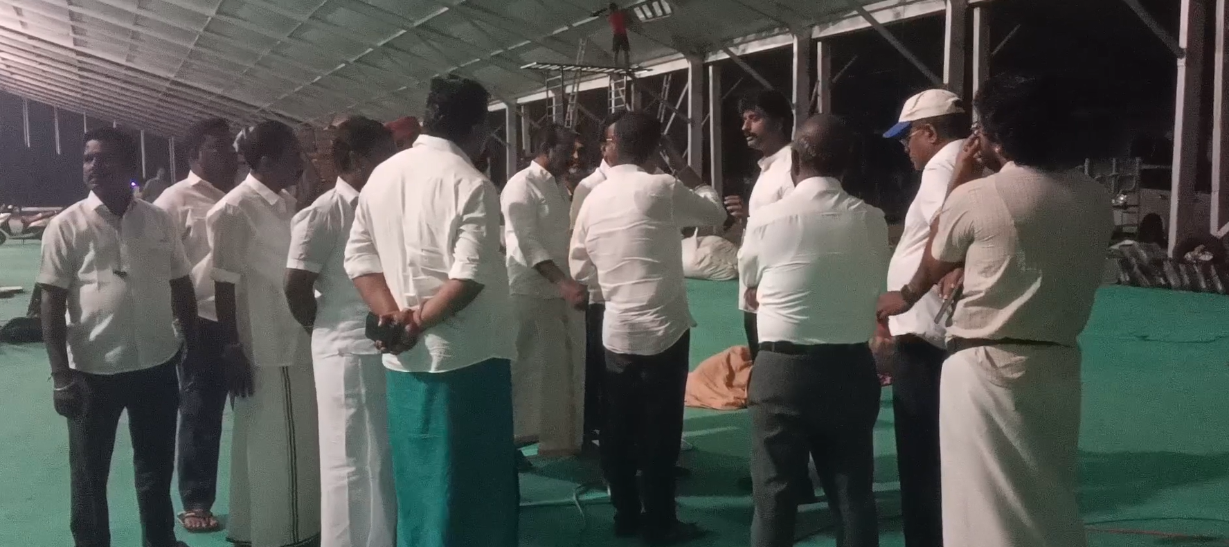 மேடையை அமைக்கும் பணிகளை ஆய்வு மேற்கொண்டார்கள் அவருடன் பாஜக கட்சி நிர்வாகிகள் மற்றும் அதிமுக நிர்வாகிகள் உடன் இருந்தார்கள்.