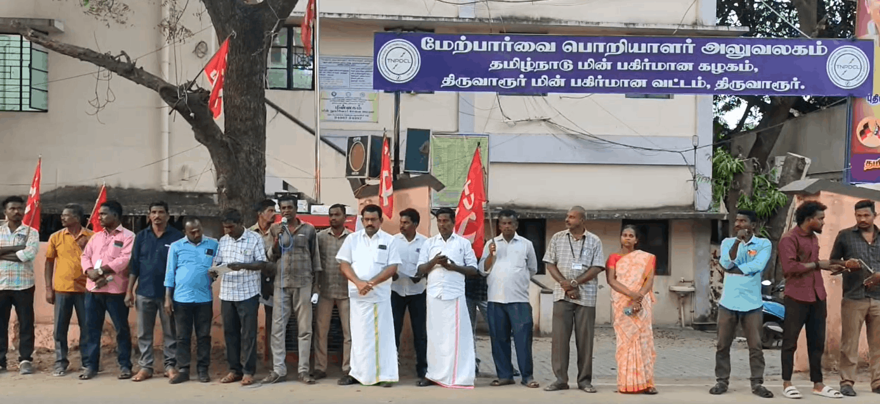 திருவாரூர் மின்சார மேற்பார்வை பொறியாளர் அலுவலகம் முன்பு மின்சார சட்ட திட்ட மசோதா 2025ஐ திரும்ப பெற வேண்டும்,ஸ்மார்ட் மீட்டர் திட்டத்தின் மூலம் தனியார்மையத்தை அனுமதிக்க கூடாது,01.02.2023 ல்,வழங்க வேண்டிய ஊதிய உயர்வை உடனே வழங்கிட வேண்டும்,ஊர் மாறுதல் உத்தரவில் அரசியல் தலையீடு என்ற பெயரில் வாரிய உத்தரவுகளுக்கு மாறாக உத்தரவுகளை வழங்கக்கூடாது,காலி பணியிடங்களை உடனே நிர்பட வேண்டும்,யங் மேன் பணியாளர்களை பல உதவியாளராக பதவி மாற்றம் செய்து 6% ஊதிய உயர்வினை வழங்கிட வேண்டும். உள்ளிட்ட 11 அம்ச கோரிக்கைகளை மத்திய, மாநில அரசுகள் நிறைவேற்ற வலியுறுத்தி மின் ஊழியர் மத்திய அமைப்பு சார்பில் மாலை நேர கோரிக்கை ஆர்ப்பாட்டம் நடைபெற்றது,இத்திட்டத் தலைவர் சகாயராஜ் தலைமையில் 50க்கும் மேற்பட்ட ஊழியர்கள் கலந்து கொண்டு தங்களது கோரிக்கைகளை வலியுறுத்தி முழக்கங்களை எழுப்பினர். இந்த ஆர்ப்பாட்டத்தில் சி ஐ டி யு மாவட்ட செயலாளர் அனிபா, திட்ட பொருளாளர் முகேஷ் உள்ளிட்ட பலர் கலந்து கொண்டனர்.