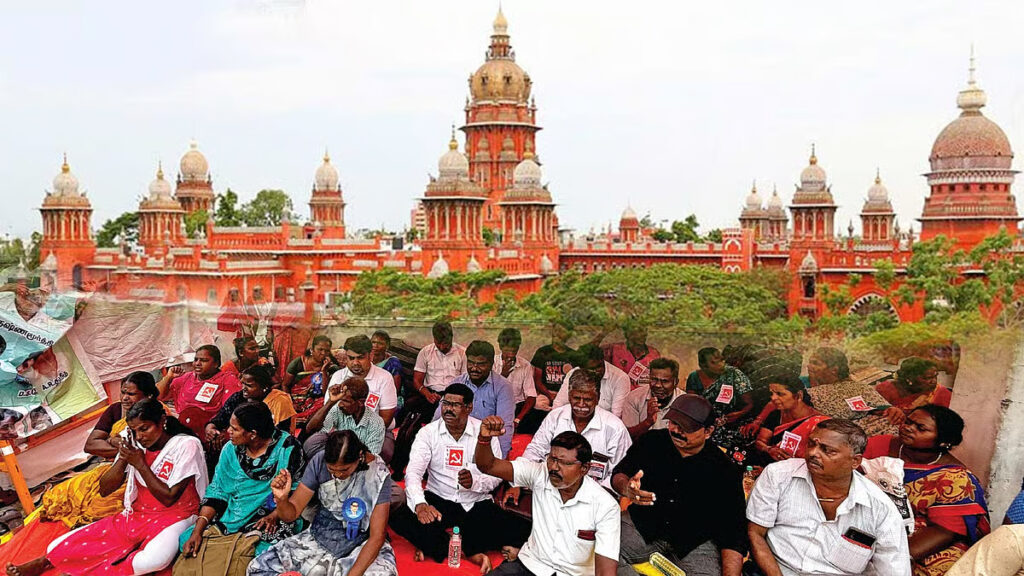 இந்த மனு தலைமை நீதிபதி எம்.எம். ஸ்ரீவஸ்தவா, நீதிபதி ஜி. அருள்முருகன் அடங்கிய அமர்வில் விசாரணைக்கு வந்தது. மனுதாரர் தரப்பில் மூத்த வழக்கறிஞர் டி. மோகன் ஆஜராகி, “போராட்டத்தில் 1,400 பெண்கள் பங்கேற்றனர். அவர்களை கலைக்க 200 பெண் போலீசார் அழைக்கப்பட்டனர். ஆனால் உயர்நீதிமன்றம் முன்பே வழங்கிய கட்டுப்பாட்டு உத்தரவை போலீசார் மீறினர்,” என்று வாதிட்டார்.