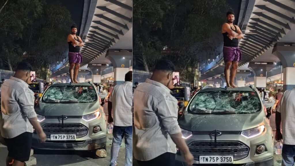 ஞாயிற்றுக்கிழமை விடுமுறை தினம் என்பதால் கோவையின் முக்கியச் சாலைகளில் போக்குவரத்து நெரிசல் அதிகமாக இருந்தது. அப்போது பீளமேடு பகுதியில் வந்த ஒரு சொகுசு கார், சாலையில் சென்ற பைக்குகள் மற்றும் கார்கள் மீது மோதி தாறுமாறாக ஓடியது. இதனால் அதிர்ச்சியடைந்த வாகன ஓட்டிகள் காரை நிறுத்த முயன்றனர். ஆனால், காரை ஓட்டி வந்த இளைஞர் எதற்கும் அஞ்சாமல் மேலும் வேகத்தை அதிகரித்து தப்ப முயன்றார். இதனால் ஆத்திரமடைந்த பொதுமக்கள், காரைச் சூழ்ந்து அதன் கண்ணாடிகளை அடித்து உடைத்து கட்டாயமாக நிறுத்தினர்.