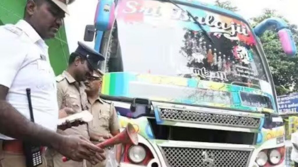 நாமக்கல் மாவட்டம் முழுவதும் சாலைப் பாதுகாப்பை உறுதி செய்யவும், ஒலி மாசுவைக் கட்டுப்படுத்தவும் அரசு மற்றும் தனியார் பேருந்துகளில் போக்குவரத்துத் துறை அதிகாரிகள் அதிரடிச் சோதனையில் ஈடுபட்டனர். விதிகளுக்குப் புறம்பாகப் பொருத்தப்பட்டிருந்த அதிக ஒலி எழுப்பும் ‘ஏர்-ஹாரன்களை’ (Air Horns) அகற்றிய அதிகாரிகள், விதிமீறலில் ஈடுபட்ட வாகன உரிமையாளர்களுக்குக் கடும் எச்சரிக்கை விடுத்துள்ளனர்.