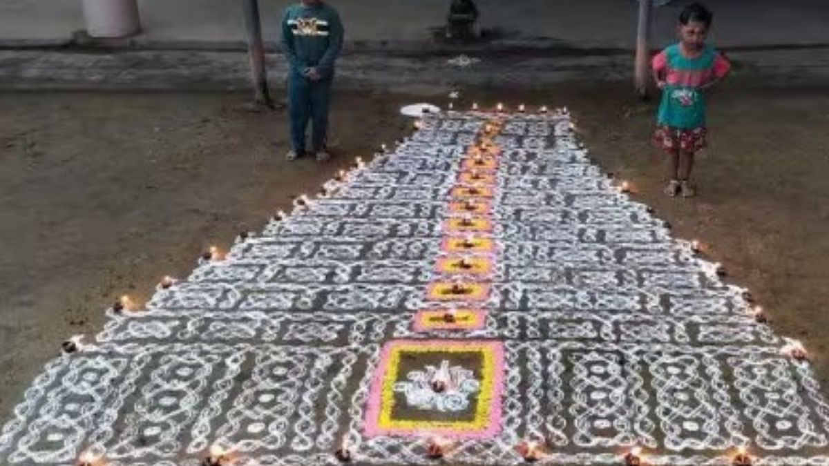 இதன் ஒரு பகுதியாக நேற்று அதிகாலை, மதுரை மீனாட்சி அம்மன் கோயில் கோபுரத்தின் கலைநயத்தை நினைவூட்டும் வகையில் 15 அடி நீளம் மற்றும் 10 அடி அகலத்தில் பிரம்மாண்டமான கோலம் வரையப்பட்டது. வண்ணப்பொடிகள் மற்றும் தீப அலங்காரங்களுடன் மிளிர்ந்த இந்தக் கோபுரக் கோலம், கோயிலுக்கு வந்த பக்தர்களைப் பெரும் வியப்பில் ஆழ்த்தியது. மார்கழி மாதக் குளிரையும் பொருட்படுத்தாமல், அதிகாலை 4:00 மணிக்கே ஒன்றுதிரளும் இப்பெண்கள், ஒரு மணி நேர உழைப்பில் இத்தகைய கலைப் படைப்புகளை உருவாக்கி வருகின்றனர். இது வெறும் அலங்காரமாக மட்டுமின்றி, இறையுணர்வையும் ஒருமித்த மனநிலையையும் மேம்படுத்துவதாகப் பெண்கள் மகிழ்ச்சியுடன் தெரிவிக்கின்றனர்.