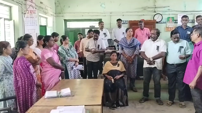 தொடர்ந்து மதிய உணவு இடைவேலையின்போது அனைவரும் ஒன்றிணைந்து பிரச்சாரம் நடந்தது. சிறப்பு பணி பாதுகாப்பு சட்டத்தை உடனே இயற்ற வேண்டும்,அனைத்து நிலை ஊழியர்களுக்கு மேம்படுத்தப்பட்ட ஊதியம்,தனி ஊதியம் உடனடியாக வழங்கிட வேண்டும்,கிராம உதவியாளர்களுக்கு வரையறுக்கப்பட்ட கால முறை ஊதியம் வழங்க வேண்டும்,பொதுமக்களுக்கான பணியை சிறப்புடன் மேற்கொள்ள வருவாய் மற்றும் பேரிடர் மேலாண்மைதுறையில் அனைத்து காலிப்பணியிடங்களையும் கால முறை ஊதியத்தில் உடனடியாக நிரப்பிட வேண்டும் உட்பட 9 அம்ச கோரிக்கைகளை வலியுறுத்தி வரும் 25ஆம் தேதி முதல் 42 ஆயிரம் வருவாய் துறை அலுவலர்கள் பங்கேற்கும் மாநிலம் தழுவிய காலவரையற்ற வேலை நிறுத்தம் மற்றும் 25ஆம் தேதி முதல் மாவட்ட தலைநகரில் தொடர் காத்திருப்பு போராட்டம் நடத்திட வருவாய் துறை சங்கங்களின் கூட்டமைப்பு மாநில மையம் முடிவு செய்துள்ளதையும், இந்த போராட்டங்களில் பங்கேற்றிடுவது குறித்து பிரச்சாரக் கூட்டம் வருவாய் துறை அலுவலர் சங்க மாவட்ட ஒருங்கிணைப்பாளர் தென்னரசு தலைமையில் நடைபெற்றது. இதில் மாநில செயலாளர் இளவரசு, மாவட்ட இணை செயலாளர்கள் முருகானந்தம், தரணி, மாவட்ட துணைத்தலைவர் பாபு மற்றும் நிர்வாகிகள் பங்கேற்று பேசினார்.