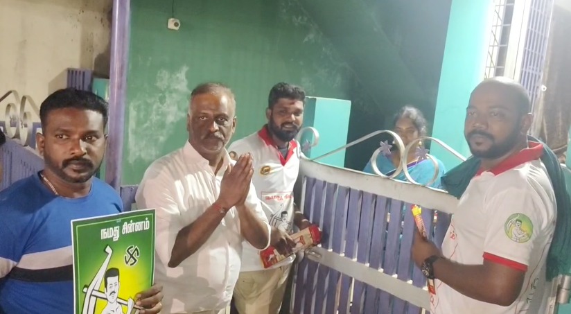 மயிலாடுதுறை நகரில் நாம் தமிழர் கட்சி வேட்பாளர் காசிராமன் வீடு வீடாக நடந்து சென்று ஆரவாரம் இன்றி துண்டு பிரசுரம் அளித்து பொதுமக்களிடம் தான் போட்டியிடும் விவசாயி சின்னத்திற்கு தீவிர வாக்கு சேகரிப்பில் ஈடுபட்டார்:-