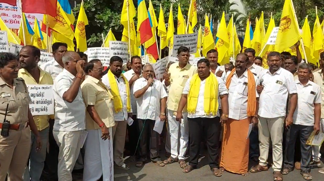 மேலும் இந்த அறவழி ஆர்ப்பாட்டத்தில் சிறப்பு அழைப்பாளர்களாக மாநில இணை செயலாளர் ஸ்டீல் சதாசிவம் மாநில துணைத்தலைவர் சுரேஷ் ஆகியோர் கலந்து கொண்டு வன்னியர் சங்கமும் பாட்டாளி மக்கள் கட்சியும் பல ஆண்டுகளாக போராடி மக்களுக்கு ஆறு விதமான இட ஒதுக்கீட்டு பலன்களை பெற்றுக் கொடுத்திருக்கிறது. ஆனால் திமுக அரசு வன்னியர்களுக்கு வழங்க வேண்டிய 10.5 சதவீத இட ஒதுக்கீட்டை வழங்காமல் வஞ்சித்து எங்கள் பிள்ளைகளின் எதிர்கால கல்விக்கு கேள்விக்குறியாக நடந்து கொள்கிறது. அதேபோல் உடனடியாக சாதிவாரி கணக்கெடுப்பு நடத்த வேண்டும் என்று கோஷங்கள் எழுப்பி கண்டன உரையாற்றினர்.