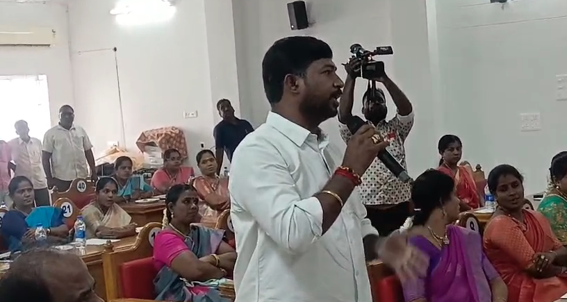 ஒன்றாவது வார்டு உள்ளிட்ட பல வார்டுகளில் குடிநீர், பாதாள சாக்கடை, சாலை போன்ற அடிப்படை வசதிகள் சரிவர இல்லை என கூறி, இதுகுறித்து நடவடிக்கை எடுக்க வேண்டும் என்று 1வது வார்டு உறுப்பினர் கோல்ட் சேகர் கூட்டத்தில் கோரிக்கை முன்வைக்க முயன்றார்.