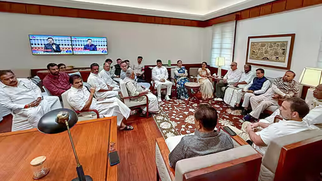 இன்று நண்பகல், காங்கிரஸ் தலைவர் மல்லிகார்ஜூன கார்கே வீட்டில் எதிர்க்கட்சித் தலைவர்கள் சந்தித்து ஆலோசனை நடத்துகின்றனர். வேட்பாளர் தேர்வு செய்யும் அதிகாரம் கார்கேவிடம் வழங்கப்பட்டுள்ளதாக கூறப்பட்டாலும், இண்டி கூட்டணியில் ஒருமித்த கருத்து இன்னும் உருவாகவில்லை என்று தகவல்கள் தெரிவிக்கின்றன.