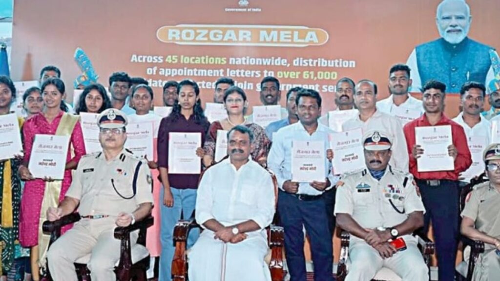 இந்தியாவை 2047-ஆம் ஆண்டிற்குள் முழுமையான வல்லரசு நாடாக மாற்றும் மத்திய அரசின் தொலைநோக்குத் திட்டத்தின் ஒரு பகுதியாக, நாடு முழுவதும் உள்ள மத்திய பொதுத்துறை நிறுவனங்களில் காலியாக இருந்த 61,000-க்கும் மேற்பட்ட பணியிடங்களுக்குத் தேர்வு செய்யப்பட்ட இளைஞர்களுக்குப் பணி ஆணைகள் வழங்கும் ‘வேலைவாய்ப்புத் திருவிழா’ (Rozgar Mela) மிகச் சிறப்பாக நடைபெற்றது. டெல்லியில் நடைபெற்ற பிரதான நிகழ்வில் பிரதமர் நரேந்திர மோடி அவர்கள் காணொளி காட்சி வாயிலாகப் பங்கேற்றுப் புதிய பணியாளர்களுக்குப் பணி ஆணைகளை வழங்கி வாழ்த்தினார். இதன் தொடர்ச்சியாக, திருவள்ளூர் மாவட்டம் ஆவடியில் உள்ள சி.ஆர்.பி.எஃப் (CRPF) குரூப் மையத்தில் நடைபெற்ற விழாவில் மத்திய இணை அமைச்சர் எல்.முருகன் கலந்துகொண்டு, உள்துறை, பாதுகாப்புத் துறை மற்றும் பல்வேறு பொதுத்துறை நிறுவனங்களுக்குத் தேர்வு செய்யப்பட்ட 328 பணியாளர்களுக்குப் பணி ஆணைகளை நேரில் வழங்கிச் சிறப்பித்தார்.