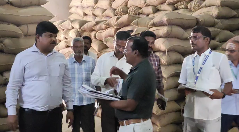 மாவட்டத்தில் நாள் ஒன்றுக்கு 150 லாரிகள் மூலம் 3 ஆயிரம் மெட்ரிக் டன் நெல் இயக்கம் செய்யப்படுகிறது. தினசரி 1 அல்லது 2 ரயில்கள் மூலம் 2,000 மெட்ரிக் டன் முதல்; 4,000 மெ.டன் வரை நெல் வெளிமாவட்டங்களுக்கு நகர்வு செய்யப்பட்டு வருகின்றன. மாவட்டத்தில் 24,688 விவசாயிகளிடமிருந்து நெல் கொள்முதல் செய்யப்பட்டு, இதுவரை ரூ.303.84 கோடி விவசாயிகள் வங்கிக்கணக்கில் வரவு வைக்கப்பட்டுள்ளது. மீதமுள்ள ரூ.1.03 கோடி வரவு வைக்க நடவடிக்கை மேற்கொள்ளப்பட்டு வருகிறது என்றார். ஆய்வின்போது, தமிழ்நாடு நுகர்பொருள் வாணிபக் கழக முதுநிலை மண்டல மேலாளர் நளினா, முதுநிலை மேலாளர் (தரக்கட்டுப்பாடு) செந்தில் மற்றும் அரசு அலுவலர்கள் உடன் இருந்தனர்.