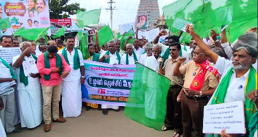 காவிரியின் குறுக்கே கர்நாடக அரசு மேகதாத் அணை கட்ட தொடர்ந்து முயற்சி மேற்கொள்வதை கண்டித்தும் , தமிழ்நாட்டு காவிரி உரிமை பறித்து கர்நாடகத்திற்கு சாதகமாக செயல்படுவதற்காக ஒன்றிய அரசால் காவிரி மேலாண்மை ஆணைய தலைவராக அமர்த்தபட்ட எஸ்.கே.ஹெல்தர் அந்த பதிவில் இருந்து உடனே வெளியேற்ற வலியுறுத்தியும், நேரடி நெல் கொள்முதல் நிலையங்களில் விவசாயிகள் கொண்டுவரும் நெல்மணிகளை 22 சதவீதம் வரை ஈரபதம் பார்க்காமல் கொள்முதல் செய்ய வேண்டும் , 2025 விதை சட்ட வரைவு மசோதாவை கைவிட வேண்டும். அனைத்து வேளாண் விளைப் பொருட்களுக்கும் குறைந்தபட்ச ஆதார விலையை (MSP) நிர்ணய செய்து சட்ட பூர்வமாக்கிட நடவடிக்கை எடுக்க வேண்டும் டெல்டா மாவட்டத்தில் பருவம் தவறி பெய்த கனமழையால் பாதிக்கப்பட்ட விவசாயிகளுக்கு ஏக்கர் ஒன்றுக்கு ரூ 35 ஆயிரம் இழப்பீடு தொகை வழங்க வேண்டும் உழவர்களின் உரிமை மின்சாரத்தை பாதிக்கும் வகையில் மின்சார திருத்த சட்ட முன் வரைவு 2025 யை உடனே திரும்ப பெற வேண்டும் இயற்கை வேளாண் விஞ்ஞானி நம்மாழ்வார்க்கு தஞ்சாவூரில் நினைவு மணி மண்டபத்தில் திருவுறுவ சிலை நிறுவ வேண்டும் உள்ளிட்ட பல்வேறு கோரிக்கைகளை வலியுறுத்தி திருவாரூர் மாவட்டம் மன்னார்குடியில் காவிரி உரிமை மீட்பு குழு சார்பில் உழவர் எழுச்சி பேரணி நடைபெற்றது இந்த பேரணியில் காவிரி உரிமை மீட்பு குழு ஒருங்கிணைப்பாளர் பெ மணியரசன் தலைமையில் சுமார் 300க்கும் மேற்பட்டோர் கலந்து கொண்டனர் முன்னதாக பேரணி தேரடியில் தொடங்கி நகரின் முக்கிய வீதீகளின் வழியாக சென்று நகராட்சி முன் வைக்கபட்ட வேளாண் விஞ்ஞானி நம்மாழ்வார் திருவுருவ படத்திற்கு மாலை அணிவித்து மரியாதை செய்யபட்டது செய்தியாளர்களுக்கு பேட்டியளித்த மணியரசன் கர்நாடக போல தமிழகத்தில் விவசாயிகளுக்கு முதல்வர் குரல் எழுப்பவில்லை இணியும் விவசாயிகளுக்கு ஆதரவாக குரல் எழுப்பவில்லையென்றால் இந்த தேர்தலில் நோட்டவிற்கு வாக்களியுங்கள் என தெரிவித்தார்