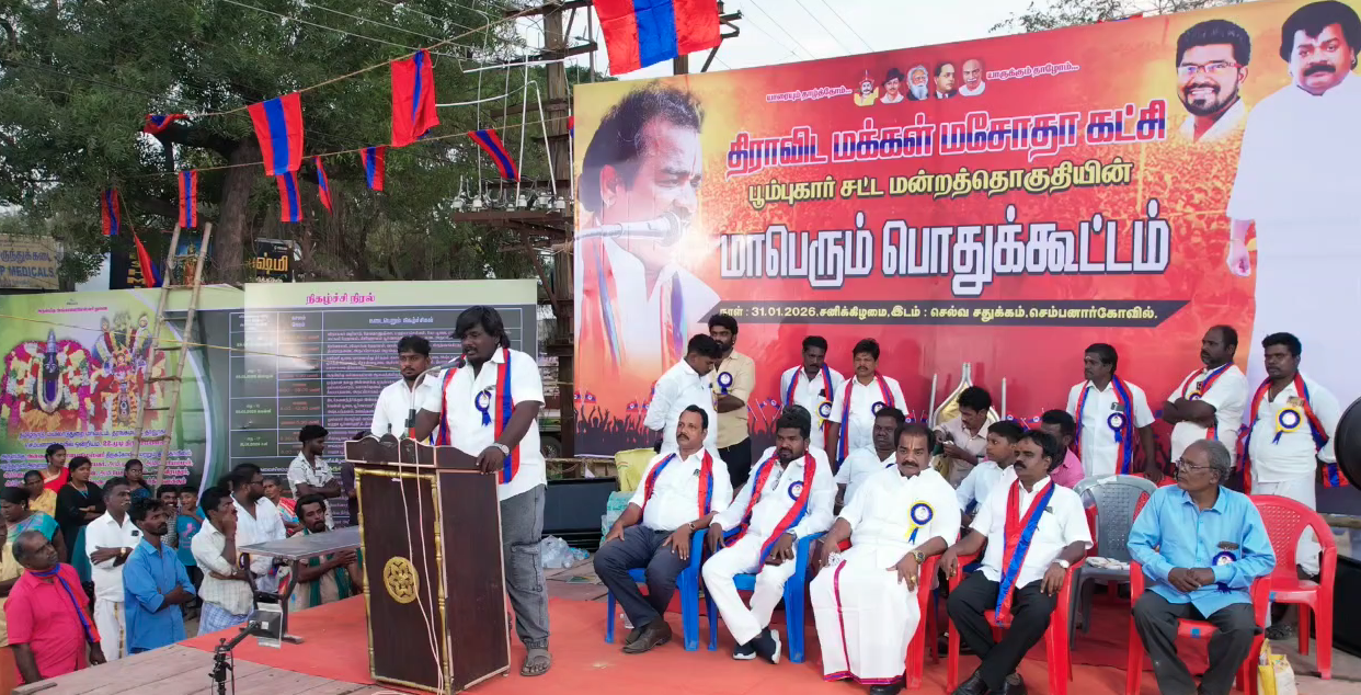 கொள்ளையடிப்பதற்காகவே மயிலாடுதுறை பாதாள சாக்கடை புதிய திட்டமா? என்றும் மக்களை ஏமாற்றுவதையே வாடிக்கையாக கொண்டுள்ளதாக ஆளும் திமுக ஆண்ட அதிமுக அரசுகளை கடுமையாக சாடிய டாக்டர்.மாயாஜி மயிலாடுதுறை மாவட்டம், செம்பனார்கோவில் செல்வம் சதுக்கத்தில் திராவிட மக்கள் மசோதா கட்சியின் பூம்புகார் சட்டமன்ற தொகுதியின் கொள்கை விளக்க பொதுக்கூட்டம் நடைப்பெற்றது. அக்கட்சியின் மாநில பொதுச்செயலாளர் ஆர்.கே.வி. ரூபன் தலைமையில் நடைபெற்ற இந்த பொதுக்கூட்டத்தில் கட்சியின் மாநில தலைவர் டாக்டர்.மாயா வெங்கடேசன் சிறப்புரையாற்றினார். மயிலாடுதுறை நகர எல்லைக்குள் நுழைந்தாலே மூக்கை துளைக்கும் பாதாள சாக்கடை தான் மிக முக்கிய அவலமாக உள்ளது. வீதியெங்கும் வழிந்தோடும் கழிவு நீரால் மக்கள் படும் வேதனை சொல்லி மாளாது. கடந்த 2007 ஆம் ஆண்டு தமிழ்நாடு குடிநீர் வடிகால் வாரியம் மூலமாக மத்திய அரசு 20 கோடி,மாநில அரசு 15 கோடி,பொதுமக்கள் தரப்பில் 7 கோடி என 42 கோடியில் பெரும் ஊழலுடன் அமைக்கப்பட்ட பாதாள சாக்கடை திட்டத்தால் நகரவாசிகள் மட்டுமின்றி சுற்றுவட்டார கிராம மக்களும் நிம்மதி இழந்து,சுகாதாரம் இழந்து ,நல்ல காற்றை இழந்து, தொற்றுநோய் பாதிப்போடும்,அபாயத்தோடும் காலத்தை கடத்துகின்றனர். தரமற்ற குழாய்களை கொண்டு தரமின்றி செய்த பணிகளால் ஓரிரு ஆண்டுகளிலேயே நகர சாலைகள் உள்வாங்க தொடங்கி இதுவரை பல நூறு முறைக்கும் மேல் சாலைகள் எல்லாம் வாய்பிளந்து ராட்சச பள்ளங்களை ஏற்படுத்தி மக்களை ஒரு வழிசெய்து வருகிறது. 15 ஆண்டுகளுக்கும் மேலாக பாதாள சாக்கடை குழாய்கள் உடைந்து ஆபத்தான பள்ளங்கள் ஏற்பட்டு சாக்கடை நீர் எங்கு பார்த்தாலும் பெருக்கெடுத்து ஓடுவதால் மக்கள் நிம்மதியாய் வாழ தகுதியற்ற ஊர்களில் ஒன்றாக மயிலாடுதுறை மாறிவிட்டது. எங்கு பார்த்தாலும் பாதாள சாக்கடை கழிவுகள் வழிந்தோடும் சாலைகள்,வீதியோரங்களில் குப்பைமேடுகள், நகரை கடந்துச்செல்லும் வரை கட்டாயம் மூக்கைப்பொத்திக்கொள்ள வேண்டிய நிர்ப்பந்தம் என சுகாதார சீரழிவால் ஒட்டுமொத்த நகரமக்களும் சிக்கி தவிக்கின்றனர். இவையெல்லாம் ஒருபுறம் இருக்க மயிலாடுதுறை நகர மக்கள் தான் பாதிப்பை அனுபவிக்கிறார்கள் என்றால், சுற்றியுள்ள கிராம மக்களும் பாதாள சாக்கடையால் கடும் அவதிக்கு ஆளாகி வருகின்றனர். ஒட்டுமொத்த கழிவும் மன்னம்பந்தல் பகுதியிலிருந்தே சுத்திகரிக்கப்படாமல் கழிவுகளாகவே சத்தியவாணன் வாய்க்காலில் திறந்துவிடப்படுகிறது. முக்கிய “ஏ” பிரிவு பாசன வாய்க்காலான இந்த வாய்க்காலை நம்பி தான் மன்னம்பந்தல் ,ஆறுபாதி,பரசலூர், மடப்புரம், முக்கரும்பூர், தென்பாதி, காலமநல்லூர்,கிடங்கல்,பூந்தாழை , கருவேலி உள்ளிட்ட மருதம்பள