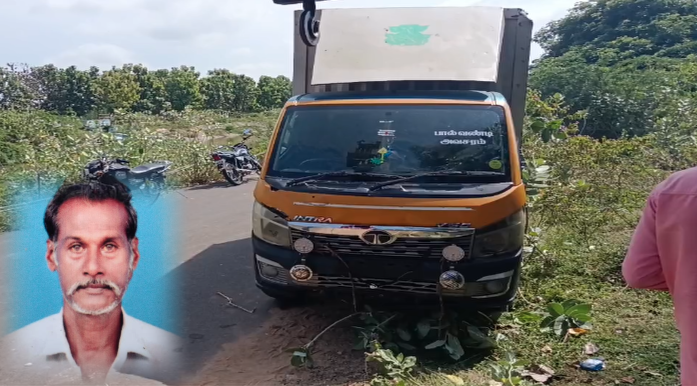 திருவாரூரில் அறுவடை செய்த  நெல்லிற்கு பாதுகாப்பாக இருந்த விவசாய தொழிலாளி பால் வாகனம் மோதி சம்பவ இடத்திலேயே உயிரிழந்த பரிதாபம்