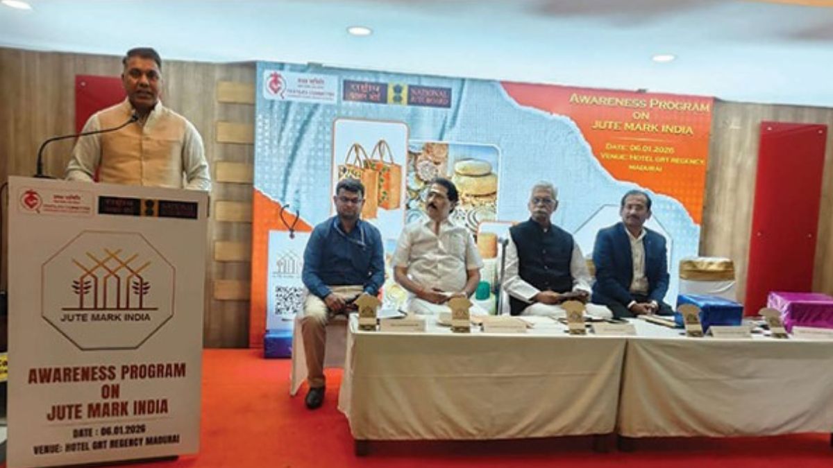 மதுரை ஜி.ஆர்.டி ஹோட்டலில் இந்திய அரசின் ஜவுளித்துறை அமைச்சகம் மற்றும் தேசிய சணல் வாரியம் இணைந்து நடத்திய “ஜூட்மார்க் இந்தியா” (Jute Mark India) திட்டம் குறித்த சிறப்பு விழிப்புணர்வு முகாம் மிகச்சிறப்பாக நடைபெற்றது. உலகளவில் பிளாஸ்டிக் பயன்பாட்டைக் குறைத்து, சுற்றுச்சூழலுக்கு உகந்த சணல் பொருட்களின் பயன்பாட்டை ஊக்குவிக்கும் நோக்கில், சணல் பொருட்களின் நம்பகத்தன்மையை உறுதிப்படுத்தும் வகையில் மத்திய அரசு இத்திட்டத்தைச் செயல்படுத்தி வருகிறது. இந்த முக்கியத்துவம் வாய்ந்த முகாமில் சணல் பொருட்கள் உற்பத்தியாளர்கள், ஏற்றுமதியாளர்கள், வர்த்தகர்கள் மற்றும் ஆர்வமுள்ள புதிய தொழில் முனைவோர் எனப் பலதரப்பட்டோர் திரளாகக் கலந்துகொண்டு பயன் பெற்றனர்.