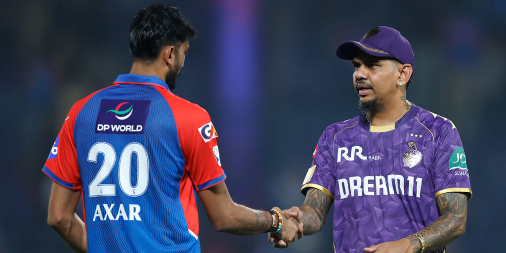 டெல்லி அருண் ஜெட்லி மைதானத்தில் நடைபெற்ற போட்டியில் டாஸ் வென்ற டெல்லி கேப்டன் அக்சர் படேல் பீல்டிங் தேர்வு செய்தார். அதன்பின் களமிறங்கிய கேகேஆர் அணிக்கு குர்பாஸ்-நரைன் ஜோடி தீவிர துவக்கத்தை வழங்கியது.