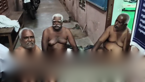 கொள்ளிடம் அருகேயுள்ள நல்லவிநாயகபுரம் ஊராட்சி கடைக்கண் விநாயகநல்லூர் கிராமத்தில் பாரதிமோகன் என்பவருக்குச் சொந்தமான ஓர் ஏக்கர் நஞ்சை நிலம் உள்ளதாம். இந்த நிலத்தை, கொள்ளிடம் பத்திரப் பதிவு அலுவலகத்தில் போலி பட்டா மூலம் மற்றெறாரு பெண்ணின் பெயருக்கு தான செட்டில்மெண்ட் செய்யப்பட்டதாகக் கூறறப்படுகிறறது. இதனால், சார்பதிவாளரை கண்டித்து, பத்திரப் பதிவு அலுவலகம் முன் நில உரிமையாளரின் உறறவினர்களான விவசாயிகள் சீயாளம் கிராமத்தைச் சேர்ந்த ராமு என்பவரின் மகன் ரவிச்சந்திரன், முருகையன் மகன் ராஜேந்திரன், ஜெயராமன் மகன் இளவரசன், நடேசன் மகன் சுந்தரமூர்த்தி ஆகியோர் அரை நிர்வாணத்துடன் அமர்ந்து போராட்டத்தில் ஈடுபட்டனர்.
