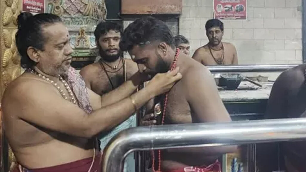 இன்று (ஞாயிற்றுக்கிழமை) விடுமுறை என்பதாலும், 41-வது நாள் விரதம் தொடங்குவதாலும், அதிகாலை முதலே பக்தர்கள் பல்வேறு வாகனங்களில் குவிந்தனர். கோவில் நடை காலை 6 மணிக்கு திறக்கப்பட்டதால், அதற்கு முன்னரே கடலில் நீராடிய பக்தர்கள், கடற்கரையில் விற்கப்படும் துளசி மாலை, பாசிமாலை வாங்கி, கடல்நீரில் கழுவி சுத்தம் செய்து, கோவில் பட்டர் அய்யப்பனிடம் கொடுத்து அணிந்து, விரதத்தைத் தொடங்கினர்.