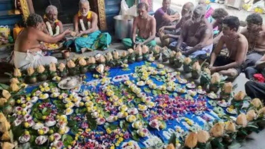 தொடர்ந்து கோயில் வளாகத்தில் கணபதி ஹோமத்துடன் தொடங்கிய பூஜையில், உலக நன்மைக்காகவும், மழை வேண்டியும் சிறப்பு யாக வேள்விகள் வளர்க்கப்பட்டன. அதனைத் தொடர்ந்து, 108 வலம்புரி சங்குகளில் புனித நீர் நிரப்பப்பட்டு, வேத மந்திரங்கள் முழங்க ‘108 சங்காபிஷேகமும்’, ஐயப்பனுக்கு உகந்த 18 படிகளுக்கான சிறப்பு பூஜைகளும் பக்தி சிரத்தையுடன் நடத்தப்பட்டன. மேலும், செல்வ வளத்தை பெருக்கும் கோ-பூஜையும் விமரிசையாக நடைபெற்றது. இந்த ஆன்மீகச் சடங்குகளை வடமதுரை பக்த ஆஞ்சநேயர் கோயில் அர்ச்சகர் நாராயணன் தலைமையிலான வேத விற்பன்னர்கள் ஆகம முறைப்படி முன்னின்று நடத்தினர்.