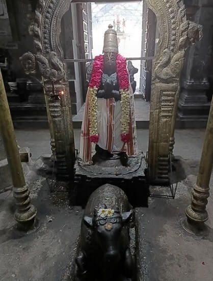மூலவரின் அரni அதிகார நந்தி நின்ற நிலையில் உள்ளார். சிவன் கோயில் என்றாலும் பெருமாள் அருள் தலம் பெற்ற தலம் என்பதால் பிரம்மோற்சவ காலத்தில் கருடசேவை நடைபெறுகிறது.