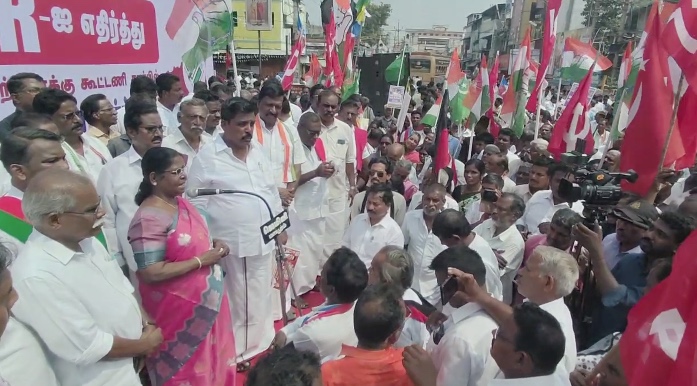 மயிலாடுதுறை மாவட்ட மதச்சார்பற்ற முற்போக்கு கூட்டணி சார்பில் மாபெரும் கண்டன ஆர்ப்பாட்டம்