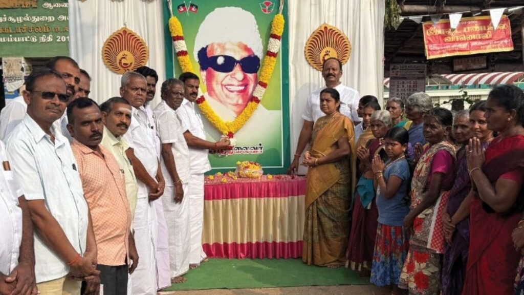 ஈரோடு மாவட்டம் பெருந்துறை சட்டமன்றத் தொகுதிக்குட்பட்ட திங்களூர் பகுதியில், அனைத்திந்திய அண்ணா திராவிட முன்னேற்றக் கழகத்தின் நிறுவனரும், தமிழக முன்னாள் முதலமைச்சருமான ‘புரட்சித் தலைவர்’ எம்.ஜி.ஆரின் 109-வது பிறந்தநாள் விழா நேற்று எழுச்சியுடன் கொண்டாடப்பட்டது. திங்களூர் அண்ணா திமுக சார்பில் ஒருங்கிணைக்கப்பட்ட இந்த நிகழ்வையொட்டி, திங்களூர் நால்ரோடு சந்திப்பில் எம்.ஜி.ஆரின் திருவுருவப் படம் மலர்களால் அலங்கரித்து வைக்கப்பட்டிருந்தது. தமிழகம் முழுவதும் அதிமுகவினர் விமரிசையாகக் கொண்டாடி வரும் நிலையில், பெருந்துறை தொகுதியிலும் தொண்டர்கள் உற்சாகத்துடன் இந்த விழாவில் பங்கேற்றனர்.