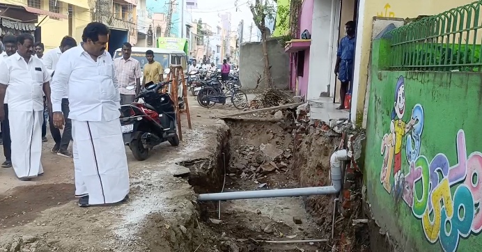 திருவள்ளூர் நகராட்சிக்கு உட்பட்ட 2-வது வார்டு நேதாஜி சாலையில் 5 ஆயிரத்திற்கும் மேற்பட்ட குடும்பத்தினர் வசித்து வருகின்றனர். தேசிய நெடுஞ்சாலை துறையினரின் கட்டுப்பாட்டில் உள்ள இந்த சாலை திருவள்ளூர் பஜாருக்கு செல்லும் முக்கிய சாலையாகவும் அமைந்துள்ளது. இந்த சாலையில் மழைநீர் கால்வாய் அமைக்காததால் மழைக்காலங்களில் சாலையில் மழைநீர் குளம் போல் தேங்கி நிற்பதால் வாகன ஓட்டிகள் மட்டுமின்றி பொதுமக்களும் மிகுந்த சிரமத்திற்கு ஆளாகி வந்தனர். இதனால் மழைநீர் வடிகால்வாய் அமைக்க பல ஆண்டுகளாக அப்பகுதி மக்கள் கோரிக்கை விடுத்து வந்தனர். இதனை அடுத்து திருவள்ளூர் சட்டமன்ற உறுப்பினர் வி.ஜி.ராஜேந்திரன் முயற்சியால் தேசிய நெடுஞ்சாலை துறையின் சார்பில் ரூ.7.25 கோடி மதிப்பீட்டில் நேதாஜி சாலையில் இருந்து வீரராகவர் கோயில் குளம் வரையில் 1200 மீட்டர் தூரத்திற்கு மழைநீர் கால்வாய் அமைக்கும் பணிகள் மும்முரமாக நடைபெற்று வருகிறது. இதனை தொடர்ந்து சட்டமன்ற உறுப்பினர் வி.ஜி.ராஜேந்திரன் சம்மந்தப்பட்ட துறை அதிகாரிகளுடன் நேரில் பார்வையிட்டு ஆய்வு மேற்கொண்டார். அப்போது அவர் மழைக்கு முன்பாக பணிகளை விரைவாக முடிகவேண்டும் என அதிகாரிகளுக்கு அறிவுறுத்தினார். இந்த ஆய்வின் போது அருகே இருந்த அங்கன்வாடி மையத்திற்கு சென்று குழந்தைகளுக்கு இனிப்புகள் வழங்கி குழந்தைகளுக்கு சத்தான உணவு வழங்கப்படுகிறதா என உணவை உண்டு பரிசோதித்தார். இந்த ஆய்வின் போது தேசிய நெடுஞ்சாலைத்துறை கோட்ட உதவி பொறியாளர், உதவி பொறியாளர், நகராட்சி ஆணையாளர், நகர்மன்ற தலைவர் உள்ளிட்ட பலர் கலந்து கொண்டனர்.