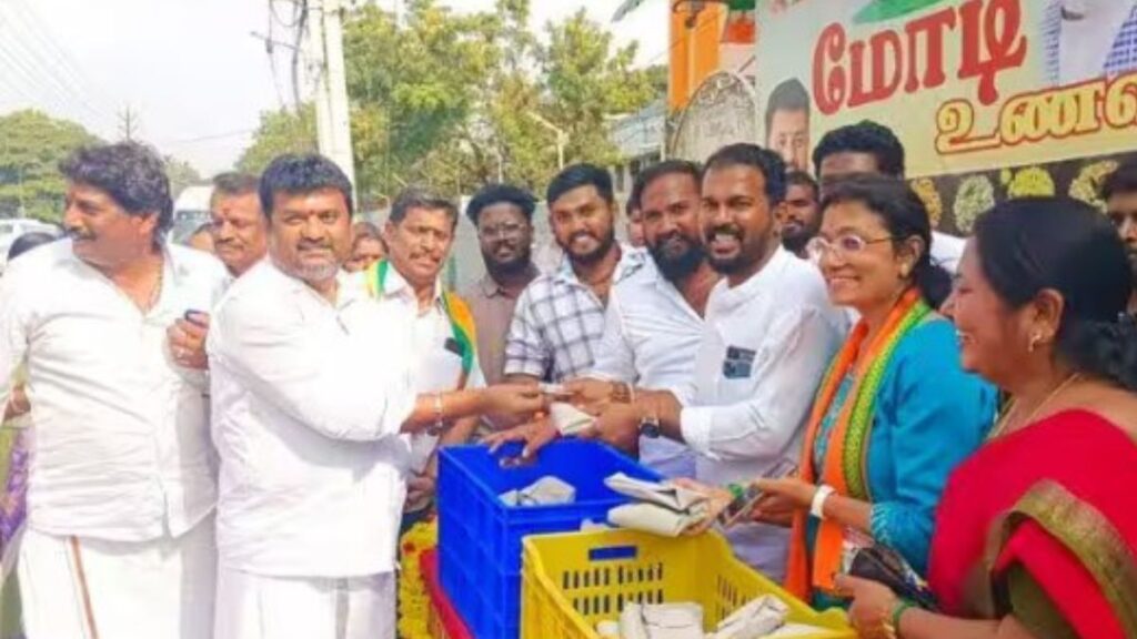 முன்னாள் பாரத பிரதமர் அடல் பிஹாரி வாஜ்பாய் அவர்களின் 101-வது பிறந்தநாளை முன்னிட்டு, டிசம்பர் 25 முதல் 31-ம் தேதி வரை நாடு முழுவதும் பல்வேறு நலத்திட்ட உதவிகள் வழங்கப்பட்டு வருகின்றன. இதன் ஒரு பகுதியாக, கோவையில் ஏழை மற்றும் நடுத்தர மக்களின் பசியைத் தீர்க்கும் உயரிய நோக்கில், வெறும் 10 ரூபாய்க்கு மதிய உணவு வழங்கும் ‘மோடி கிச்சன்’ திட்டத்தை பாரதிய ஜனதா கட்சி தொடங்கியுள்ளது. காந்திபுரம் வி.கே.கே. மேனன் சாலையில் அமைந்துள்ள பா.ஜ.க. அலுவலகம் முன்பாக நடைபெற்ற இவ்விழாவில், கோவை மாநகர் மாவட்டத் தலைவர் ரமேஷ்குமார் இத்திட்டத்தைத் தொடங்கி வைத்தார். சமூகத்தில் விளிம்பு நிலையில் உள்ள மக்களும், அன்றாடக் கூலித் தொழிலாளர்களும் தரமான உணவை மிகக் குறைந்த விலையில் பெறுவதை உறுதி செய்வதே இத்திட்டத்தின் அடிப்படை நோக்கமாகும்.