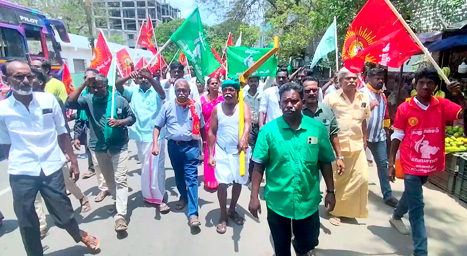 தமிழகத்தின் 17-வது சட்டமன்றத் தேர்தல் 2026 ஆம் ஆண்டு சட்டமன்ற தேர்தல் வரும் ஏப்ரல் 23ஆம் தேதி ஒரே கட்டமாக நடைபெற உள்ள நிலையில் மாநிலம் முழுவதும் வேட்புமனு தாக்கல் செய்யும் பணிகள் தொடங்கி நடைபெற்று வருகிறது . அந்த வகையில் தமிழகம் முழுவதும் அரசியல் கட்சியினர் வேட்புமனு செய்து வருகின்றனர் அந்த வகையில் திருவாரூர் மாவட்டம் மன்னார்குடியில் சட்டமன்ற தொகுதியில் போட்டியிடும் நாம் தமிழர் கட்சி வேட்பாளர் மருத்துவர் இரா பாரதி செல்வன் கட்சி நிர்வாகிகளுடன் சென்று தேர்தல் நடத்தும் அலுவலர் யோகேஸ்வரனிடம் வேட்பு மனு தாக்கல் செய்தனர் முன்னதாக நாம் தமிழர் கட்சி வேட்பாளர் மருத்துவர் இரா.பாரதிச்செல்வன் கட்சி நிர்வாகிகளுடன் ஊர்வலமாக சென்று ஏர் கலப்பை ஏந்தியவாறு பொதுமக்களிடம் விவசாயி சின்னத்திற்கு வாக்கு சேகரித்து வேட்பு மனு தாக்கல் செய்தார்.