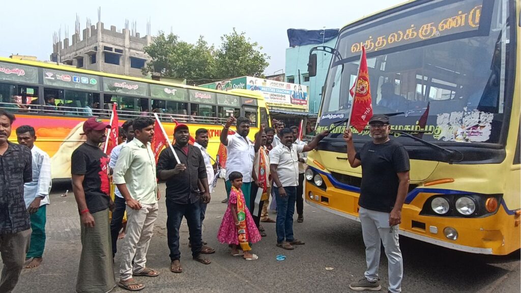 திண்டுக்கல் மாவட்டம் வத்தலக்குண்டு சுப்பிரமணிய சிவா பேருந்து நிலையத்தில், அரசுப் பேருந்துகளில் “தமிழ்நாடு” என்ற பெயர் இடம்பெறாததைக் கண்டித்து நாம் தமிழர் கட்சியினர் இன்று திடீர் போராட்டத்தில் ஈடுபட்டதால் பெரும் பரபரப்பு ஏற்பட்டது. கடந்த 2012-ஆம் ஆண்டு முதல், பேருந்துகளில் உள்ள போக்குவரத்து கழகப் பெயர்களைப் பொதுமக்கள் எளிதாகப் படிக்கும் வகையில் சுருக்கமாக மாற்றம் செய்யப்பட்ட நடைமுறை அமலில் உள்ளது. இந்நிலையில், அரசுப் பேருந்துகளில் மாநிலத்தின் பெயரான “தமிழ்நாடு” என்பது வெளிப்படையாகக் குறிப்பிடப்படவில்லை எனக் கூறி இப்போராட்டம் முன்னெடுக்கப்பட்டது. வத்தலக்குண்டு பேருந்து நிலையத்திலிருந்து அண்டை மாநிலங்கள் மற்றும் மாவட்டங்களுக்குச் செல்லும் பேருந்துகளை வழிமறித்த போராட்டக்காரர்கள், தமிழக அரசுக்கு எதிராகக் கண்டன முழக்கங்களை எழுப்பினர்.