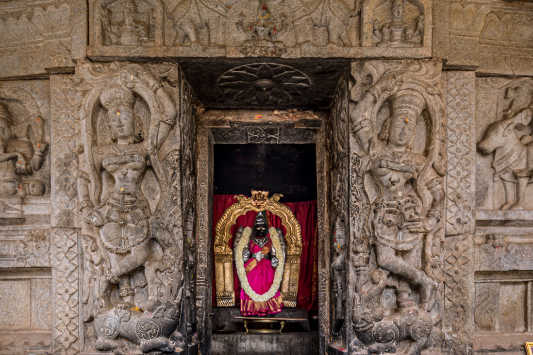 இந்த கோவில் முழுவதும் கிரானைட் கற்களால் ஆனது. ஏகப்பட்ட கற்களில் செதுக்கப்பட்ட பல தூண்கள் மற்றும் சிற்பங்கள் உள்ளன. இது ஒரு பெரிய கல் செதுக்கப்பட்ட மண்டபத்தைக் கொண்டுள்ளது. இதன் மீது அழகாக செதுக்கப்பட்ட பல தூண்கள் உள்ளன. இது மேனாட்டி வேலைப்பாடுகளுடன் கூடிய பெரிய கல் கூரையைக் கொண்டுள்ளது.
