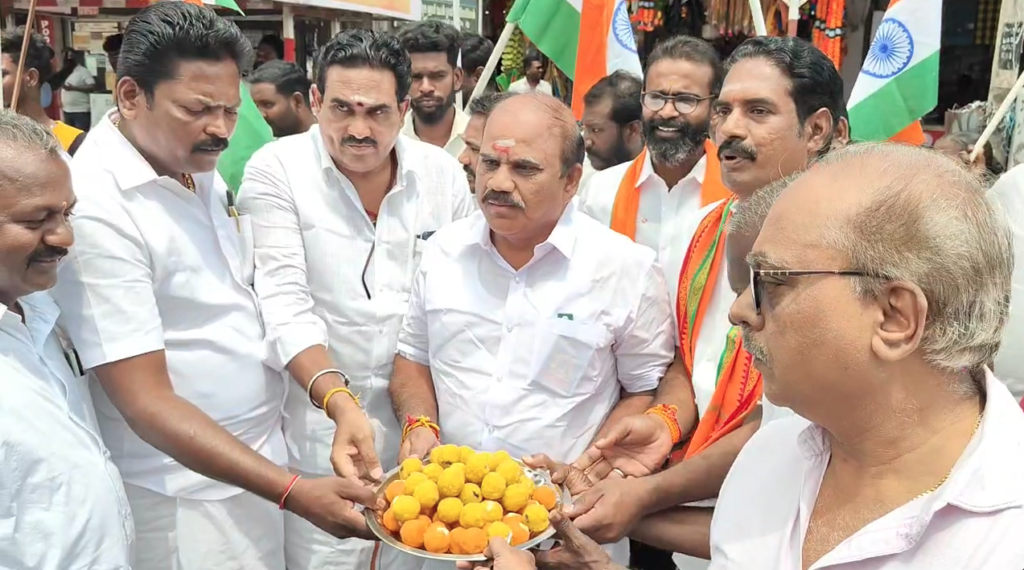 இந்தியாவின் குடியரசு துணைத்தலைவர் தேர்தலில் தேசிய ஜனநாயக கூட்டணி சார்பில் சி.பி.ராதாகிருஷ்ணன் வெற்றி பெற்றார். இந்த வெற்றியை கொண்டாடும் வகையில் மயிலாடுதுறை மாவட்டம் மயிலாடுதுறை கிட்டப்பா அங்காடி முன்பு பாஜகவினர் கொண்ட்டத்தில் ஈடுபட்டனர். பாஜக நகரதலைவர் ராஜகோபால் தலைமையில் நடைபெற்ற நிகழ்ச்சியில் மாவட்ட தலைவர் நாஞ்சில் பாலு, முன்னாள் மாவட்ட தலைவர் அகோரம், மோடி கண்ணன், மத்திய அரசு வழக்கறிஞர் ராஜேந்திரன் உள்ளிட்ட நிர்வாகிகள் தொண்டர்கள் என ஏராளமானோர் கலந்து கொண்டு பட்டாசு வெடித்தும், வெற்றி கோஷங்களை எழுப்பியும் பொதுமக்களுக்கும் பேருந்து பயணிகளுக்கும் இனிப்புகள் வழங்கியும் கொண்டாட்டத்தில் ஈடுபட்டனர்.