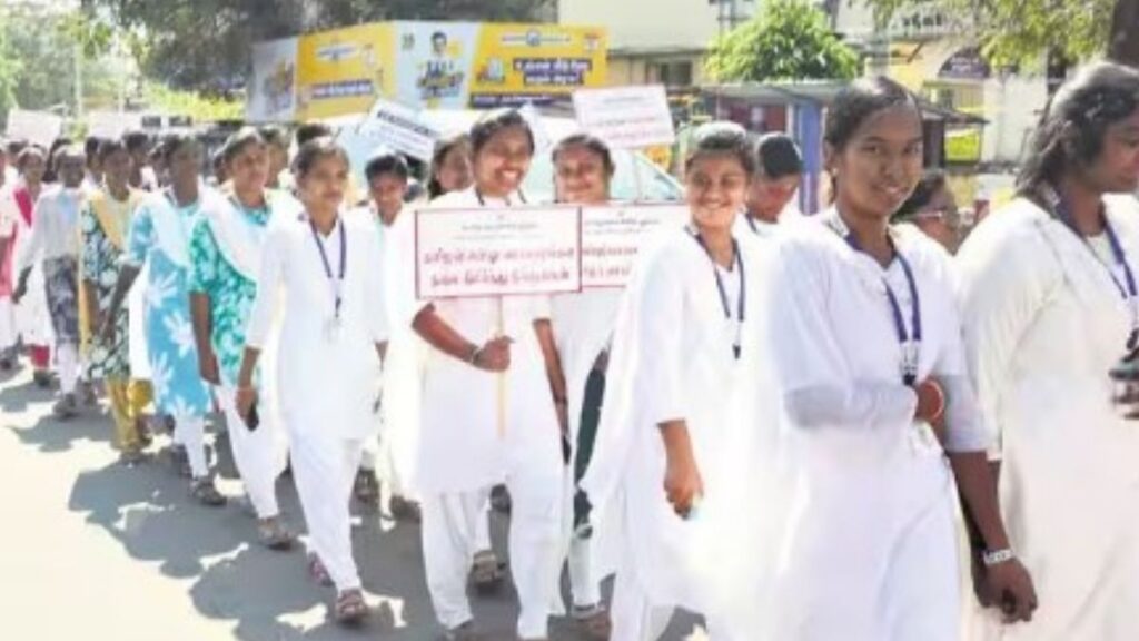 நேற்று இந்தப் போராட்டம் நான்காவது நாளாக நீடித்தது. போராட்டத்திற்குச் சங்கத்தின் மாவட்ட ஒருங்கிணைப்பாளர் சவுமியா தலைமை தாங்கினார். இதில் பங்கேற்ற செவிலியர்கள், கைகளில் கோரிக்கை பதாகைகளை ஏந்தியும், அரசுக்கு எதிராகக் கண்டன முழக்கங்களை எழுப்பியும் தங்களது எதிர்ப்பைப் பதிவு செய்தனர். குறிப்பாக, பல ஆண்டுகளாகத் தொகுப்பூதியத்தில் பணியாற்றி வரும் தங்களைப் பணி நிரந்தரம் செய்ய வேண்டும், ‘சம வேலைக்குச் சம ஊதியம்’ என்ற அடிப்படையில் ஊதிய விகிதத்தை மாற்றியமைக்க வேண்டும், காலிப் பணியிடங்களை முன்னுரிமை அடிப்படையில் நிரப்ப வேண்டும் உள்ளிட்ட 10 முக்கியக் கோரிக்கைகளை அவர்கள் வலியுறுத்தினர்.