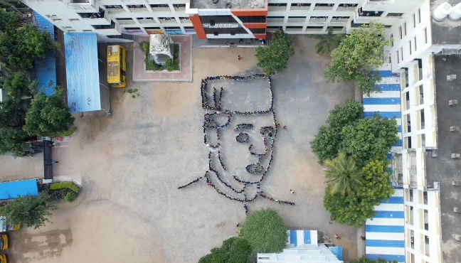 சீர்காழியில் குழந்தைகள் தினத்தில் 6,7,8 வகுப்பு மாணவர்கள் 600 பேர் ஒன்றினைந்து நேருவின் உருவத்தை காண்பித்தனர்