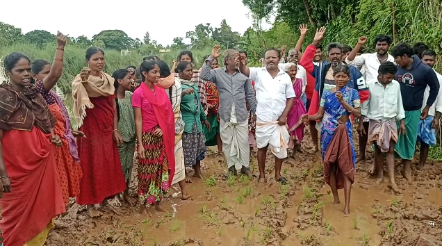 மயிலாடுதுறை மாவட்டம் குத்தாலம் ஒன்றியம் வழுவூர் ஊராட்சி பூவாலை கிராமத்தில் 500 ற்கும் மேற்பட்ட குடும்பத்தினர் வசித்து வருகின்றனர். இந்த கிராமத்தின் ஆற்றங்கரை ஓரமாக உள்ள சுடுகாட்டு சாலைக்கு செல்லும் வழியின் உள்ளே 50 வீடுகள் உள்ளன. இந்த சுடுகாட்டு சாலைக்கு செல்ல கூடிய ஒரு கிலோமீட்டர் சாலை கப்பி கற்கள் பெயர்ந்து சாலை மிக மோசமாக உள்ளது. இரண்டு ஆண்டுகளுக்கு மேலாக அதிகாரிகளுக்கு மனு அளித்தும் எந்த நடவடிக்கையும் எடுக்கவில்லை. இந்த நிலையில் தற்போது மழை பெய்து வருவதால் சாலை மிகவும் சேரும் சகதியுமாக நடக்கவே முடியாத சூழலில் உள்ளது. இங்குள்ள பள்ளிக்கு செல்ல கூடிய மாணவர்கள், பொதுமக்கள் சாலையில் வழுக்கி விழுவதாகவும், ஆற்று ஓரம் சாலை இருப்பதால் பாம்பு உள்ளிட்ட விஷ ஜந்துக்கள் வருவதாகவும் குற்றம்சாட்டுகின்றனர். மேலும் சாலை வசதி, தெருவிளக்கு வசதி, குடிநீர் வசதி செய்து தரக்கோரி எம்எல்ஏ உள்ளிட்ட அதிகாரிகளுக்கு மனு அளித்தும் நடவடிக்கை எடுக்கவில்லை என்று குற்றம் சாட்டி பெண்கள் உள்ளிட்ட பொதுமக்கள் 50க்ககும் மேற்பட்டோர் சேறும் சகதியுமாக உள்ள சாலையில் நாற்று நட்டு போராட்டத்தில் ஈடுபட்டனர். உடனடியாக மாவட்ட நிர்வாகம் போர்க்கால அடிப்படையில் சாலையை சப்பனிட்டுத் தர வேண்டும் என்று அப்பகுதி மக்கள் கோரிக்கை விடுத்துள்ளனர்