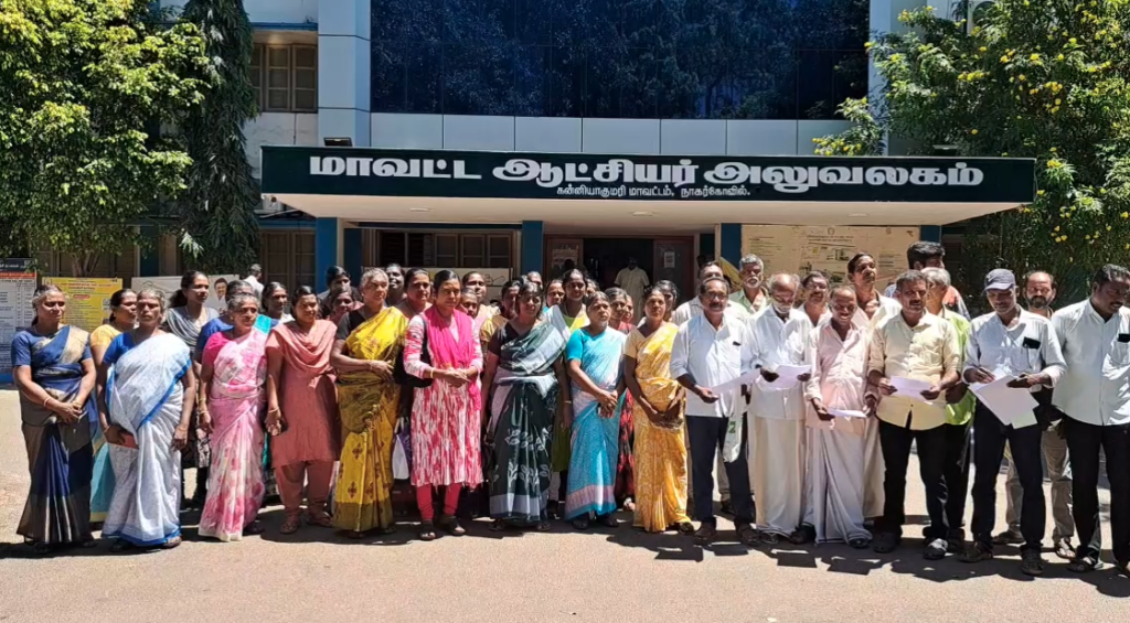 கன்னியாகுமரி மாவட்டம்: சுமார் 70 ஆண்டுகளுக்கு மேல் நூற்றுக்கணக்கான குடும்பங்களோடு வசித்து வந்த நிலங்கள் தற்போது இந்து அறநிலையத்துறை பத்திரப்பதிவு செய்ய தடை விதித்துள்ளது- தங்கள் பிள்ளைகளின் கல்விக்காக, திருமண செலவுக்காக நிலங்களை விற்கவோ வாங்கவோ முடியாத நிலை உருவாகியுள்ளது- தடையை அகற்ற வேண்டும் என ஊர் பொதுமக்கள் கன்னியாகுமரி மாவட்ட ஆட்சியர் அலுவலகத்தில் மனு
