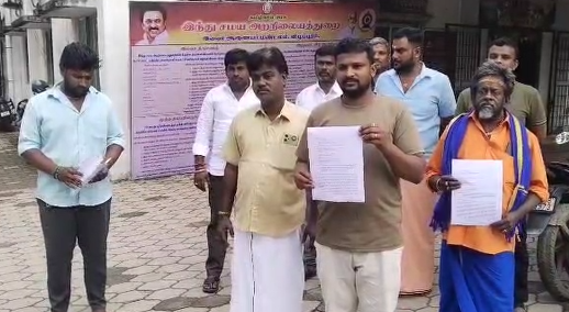 விழுப்புரம் மாவட்டம் மரக்காணம் சந்தைதோப்பு தெருவில் உள்ள ஸ்ரீ பழனி ஆண்டவர் கோவிலை அன்பழகன் மற்றும் சக்திவேல் பூசாரி ஆகியோர் கோயிலை ஆக்கிரமிப்பு செய்துள்ளதாகவும் கடந்த ஐந்து ஆண்டுகளாக கோவில் பராமரிப்பு இல்லாமல் இருந்து வருவதாகவும் இந்த கோவிலில் வசூல் செய்யும் பணத்தினை கோவில் பூசாரி ஆக உள்ள சக்திவேல் மற்றும் அன்பழகன் ஆகியோர் அபகரித்து வருவதாகவும் பழனி ஆண்டவர் கோவில் வரும் உண்டியல் வருமானத்தையும் நகைகளையும் இவர்கள் இருவரின் சுய லாபத்திற்காக பயன்படுத்தி வருவதாகவும் எனவே இந்த பகுதி மக்கள் சார்பில் கோவிலை இவரிடம் இருந்து மீட்டு இந்து சமய அறநிலைத்துறை கட்டுப்பாட்டின் கீழ் கொண்டு வந்து கோவிலில் சுப நிகழ்ச்சிகள் திருவிழாக்கள் உண்டியல் வருமானங்கள் அனைத்தும் விழா குழுவினர் அனைவரும் ஒன்றிணைந்து நல்ல முறையில் நடத்தவும் கோவிலை பொது கோவிலாக அறிவிக்கும் படிடும் அந்த பகுதி மக்கள் சார்பில் இன்று விழுப்புரம் இந்து சமய அறநிலை துறை அலுவலகத்தில் இந்து சமய அறநிலைத்துறை ஆணையரிடம் மனுவாக அளித்தனர் இந்தகோவிலை அந்த இரண்டு நபர்களிடமிருந்து மீட்டு பொதுமக்களிடம் ஒப்படைக்கும் மாறும் இந்து சமய அறநிலைத்துறை சார்பில் இந்த கோயிலை தங்களது கட்டுப்பாட்டில் கொண்டு செல்ல வேண்டும் எனவும் கேட்டு இன்று மனு அளித்தனர்.