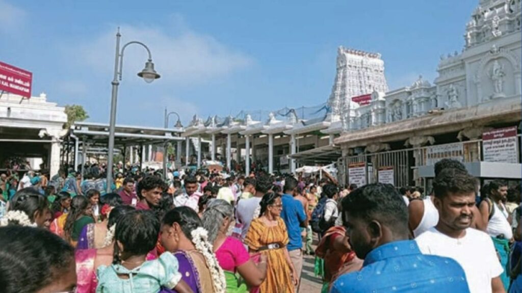 பொங்கல் மற்றும் தைப்பூசத் திருவிழாவைக் கருத்தில் கொண்டு, கடந்த சில நாட்களாகவே தூத்துக்குடி, திருநெல்வேலி, தென்காசி, விருதுநகர் ஆகிய மாவட்டங்களிலிருந்து பல்லாயிரக்கணக்கான பக்தர்கள் பாதயாத்திரையாகத் திருச்செந்தூருக்கு வந்த வண்ணம் உள்ளனர். இதுமட்டுமன்றி, கேரளா, கர்நாடகா மற்றும் ஆந்திரா போன்ற வெளிமாநிலங்களில் இருந்தும் ஏராளமான பக்தர்கள் திரண்டுள்ளனர். நாளை கொண்டாடப்படவுள்ள பொங்கல் பண்டிகைக்கு முன்னதாகவே முருகப்பெருமானை வழிபட்டுச் செல்ல வேண்டும் என்ற நோக்கில், இன்று அதிகாலை முதலே கடல் அலைகளைப் போலப் பக்தர்களின் கூட்டம் அலைமோதியது.