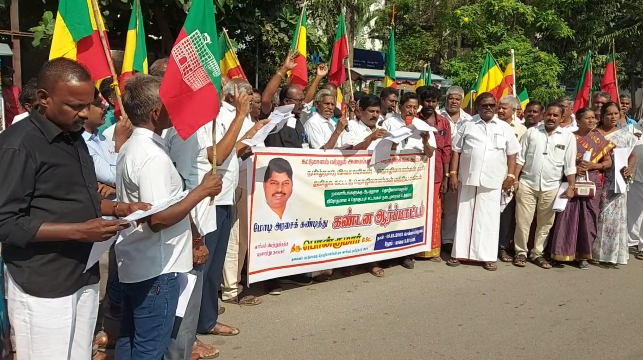மேலும் இந்த கண்டன ஆர்ப்பாட்டத்தில் மாவட்ட கூட்டமைப்பு செயலாளர் முனிரத்தினம் உள்ளிட்ட கட்டுமானம் மற்றும் அமைப்பு சாரா தொழிற்சங்க கூட்டமைப்பு தமிழ்நாடு விவசாயிகளின் தொழிலாளர்கள் கட்சி தமிழக கட்டிட தொழிலாளர்கள் மத்திய சங்கம் சார்ந்த மாவட்ட நகர ஒன்றிய பொறுப்பாளர்கள் மற்றும் உறுப்பினர்கள் கலந்து கொண்டனர்