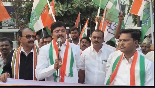 இதனை கண்டித்து திருப்பத்தூர் காங்கிரஸ் கமிட்டி நகர தலைவர் பரத் தலைமையில் கண்டன ஆர்ப்பாட்டம் நடைபெற்றது.