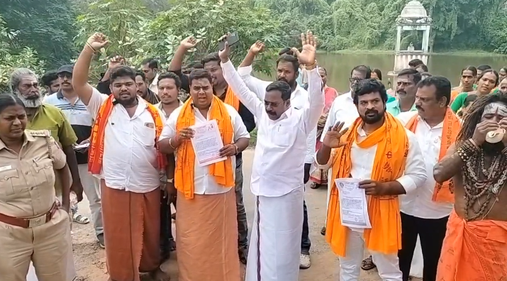 மயிலாடுதுறை மற்றும் தஞ்சை மாவட்டங்களில் அமைந்துள்ள 1500 ஆண்டுகள் பழமை வாய்ந்த சோழர் காலத்தைச் சார்ந்த கஞ்சனூர் சுயம் பிரகாசர் ஆலயம், மாங்குடி சிவலோகநாதர் ஆலயம் சூரியனார் கோயில் சுக்கிரன் கோயில் மற்றும் ஏரகரம் கந்தசாமி கோயில் ஆகியவை திருப்பணி செய்யப்படாமல் உள்ளன. இதனால் கோயில்கள் சிதிலமடையும் ஆபத்து ஏற்பட்டுள்ளது. கடந்த நான்கு ஆண்டுகளாக பல்வேறு போராட்டங்கள் நடத்தியும் இதற்கான திருப்பணி தொடங்காமல் இந்து சமய அறநிலை துறை காலம் தாழ்த்தி வருகிறது. திருப்பணிகளை உடனடியாக துவங்க வலியுறுத்தி அகில பாரத இந்து மகாசபா சார்பில் இன்று மயிலாடுதுறை அருகே சித்தர்காட்டில் அமைந்துள்ள இணை ஆணையர் அலுவலகதை சங்கு ஊதி முற்றுகையிடும் போராட்டம் நடைபெற்றது. அகில பாரத இந்து மகா சபாவின் மாநில பொதுச் செயலாளர் ராம நிரஞ்சன் தலைமையில் நடைபெற்ற போராட்டத்தில் ஏராளமான பங்கேற்று சங்கு ஊதியபடி ஊர்வலமாக வந்து கண்டன ஆர்ப்பாட்டத்தில் ஈடுபட்டனர்.