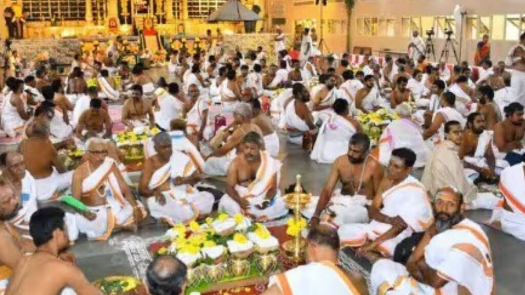 கோவை ராம் நகர் சத்தியமூர்த்தி சாலையில் அமைந்துள்ள புகழ்பெற்ற ஸ்ரீ அய்யப்பன் பூஜா சங்கத்தின் 75-வது ஆண்டு ‘பூஜா மஹோத்ஸவ’ விழா, பவள விழாவாகத் தற்பொழுது வெகு விமரிசையாக நடைபெற்று வருகிறது. கடந்த டிசம்பர் 24-ஆம் தேதி தொடங்கி நடைபெற்று வரும் இந்த ஆன்மீகப் பெருவிழாவில், நாள்தோறும் பல்வேறு வேத விற்பன்னர்கள் பங்கேற்கும் ஹோமங்களும், இசை மேதைகளின் கலை நிகழ்ச்சிகளும் அரங்கேறி வருகின்றன. விழாவின் முக்கிய நிகழ்வாக நேற்று அதிகாலை 6:00 மணிக்கு ஊர் நன்மை வேண்டி ‘கிராம பிரதக்ஷணம்’ மற்றும் ‘மஹா சங்கல்பம்’ ஆகியவை நடைபெற்றன. அதனைத் தொடர்ந்து, மங்களகரமான ‘மஹன்யாச ருத்ர ஜெபமும்’, காலை 10:00 மணிக்குச் சக்திவாய்ந்த ‘ஸ்ரீ ருத்ர ஹோமமும்’ பக்தி சிரத்தையுடன் நடத்தப்பட்டன. மதியம் 12:30 மணிக்கு ‘மஹா பூர்ணாஹூதி’ மற்றும் தீபாராதனை நடைபெற்றதைத் தொடர்ந்து, ஆயிரக்கணக்கான பக்தர்களுக்கு அன்னதானம் வழங்கப்பட்டது.