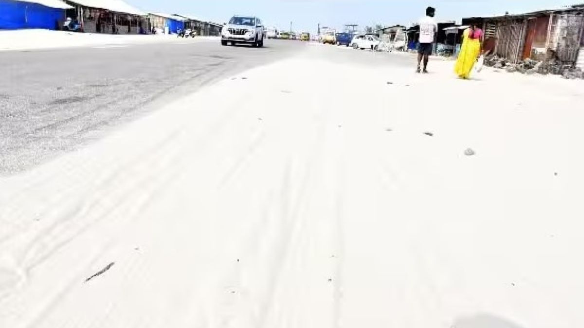 சர்வதேச சுற்றுலாத் தலமான ராமேஸ்வரத்தை அடுத்த தனுஷ்கோடிக்குச் செல்லும் தேசிய நெடுஞ்சாலையில், கடந்த சில நாட்களாக வீசி வரும் கடும் சூறாவளி காற்று காரணமாகச் சாலை முழுவதும் மணல் மேடுகள் குவிந்து கிடக்கின்றன. ‘மணல் புயல்’ போன்ற சூழல் நிலவுவதால், தனுஷ்கோடி முகுந்தராயர் சத்திரம் முதல் அரிச்சல்முனை வரையிலான முக்கியச் சாலையின் இருபுறமும் மணல் ஆக்கிரமித்துள்ளது. இதனால் தனுஷ்கோடியின் எழிலைக் காண வரும் சுற்றுலாப் பயணிகளும், இருசக்கர மற்றும் நான்கு சக்கர வாகன ஓட்டிகளும் பெரும் சிரமத்திற்குள்ளாகி வருகின்றனர். கடல் சீற்றம் மற்றும் பலத்த காற்றினால் தள்ளப்படும் கடற்கரை மணல், தார் சாலையை மூடியுள்ளதால் வாகனங்கள் செல்வதற்கே வழியில்லாத சூழல் ஏற்பட்டுள்ளது.
