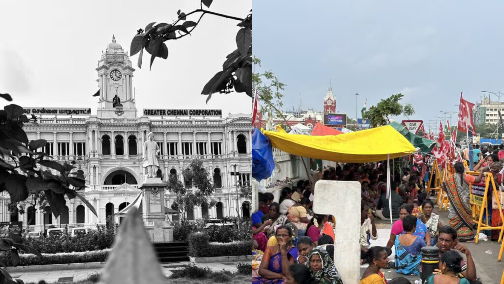 அதிகாரம் மீறி புதிய போராட்டம் நடத்த முயன்ற பணியாளர்களை போலீசார் உடனடியாக கைது செய்தனர். ரிப்பன் மாளிகை முன் புதிய போராட்டத்துக்காக தகவல் கிடைத்ததும் போலீசார் பாதுகாப்பு நடவடிக்கையில் ஈடுபட்டுள்ளனர். போராட்டத்தில் ஈடுபட்ட தூய்மை பணியாளர்கள் “கரூரில் கூட்ட நெரிசல் ஏற்பட்ட போது போலீசார் பாதுகாப்பு கொடுக்கவில்லை, இங்கே ஏன் வருகிறீர்கள்?” எனக் கேள்வி எழுப்பினர்.