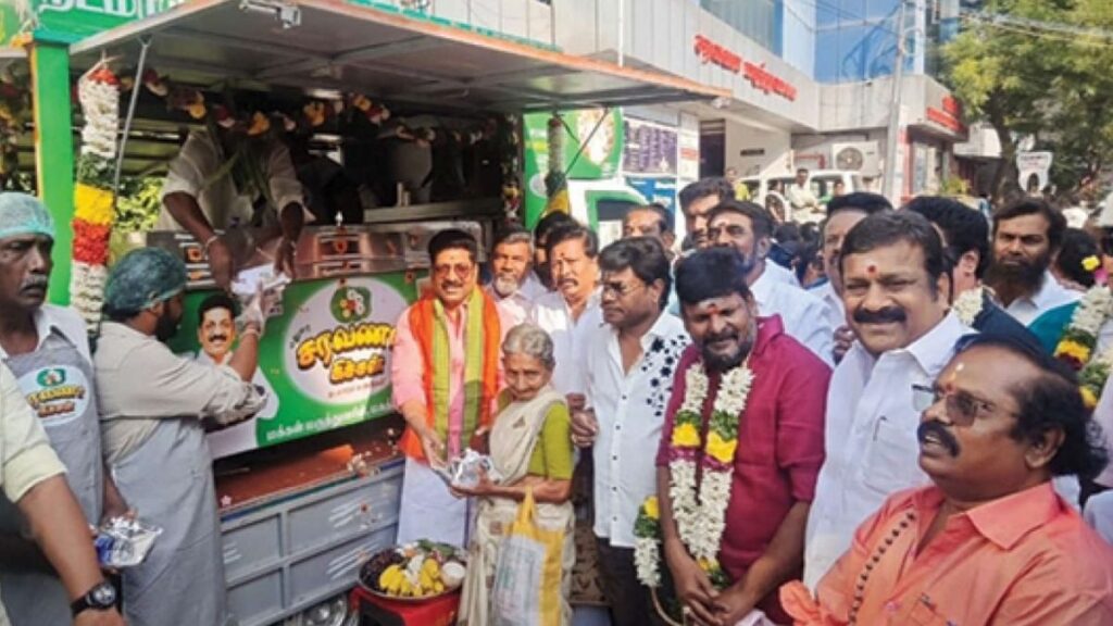 மதுரை மாநகரில் நிலவும் பசிப்பிணியைப் போக்கும் ஒரு உன்னத முயற்சியாக, நரிமேடு பகுதியில் உள்ள சரவணா மருத்துவமனை மற்றும் சூர்யா டிரஸ்ட் ஆகியவை இணைந்து, ‘மதுரை சரவணா கிச்சன்’ என்ற பெயரில் ஏழை எளிய மக்களுக்கான புதிய நடமாடும் மலிவு விலை உணவகத்தைத் தொடங்கியுள்ளன. இந்தச் சேவை மையத்தின் தொடக்க விழா இன்று காலை நரிமேடு சரவணா மருத்துவமனை வளாகத்தின் அருகே மிகச் சிறப்பாக நடைபெற்றது. இப்புதிய மக்கள் நலத் திட்டத்தை அதிமுக மருத்துவ அணி இணைச் செயலாளரும், பிரபல மருத்துவருமான டாக்டர் சரவணன் முன்னின்று ரிப்பன் வெட்டித் துவக்கி வைத்தார். தற்போதைய காலகட்டத்தில் விலைவாசி உயர்வால் சாதாரண கூலித் தொழிலாளர்களும், ஏழை மக்களும் ஒருவேளை தரமான உணவைப் பெறுவதற்கே சிரமப்படும் நிலையில், அவர்களுக்குக் குறைந்த விலையில் சுகாதாரமான உணவு கிடைக்க வேண்டும் என்பதே இத்திட்டத்தின் முக்கிய நோக்கமாக முன்வைக்கப்பட்டுள்ளது.
