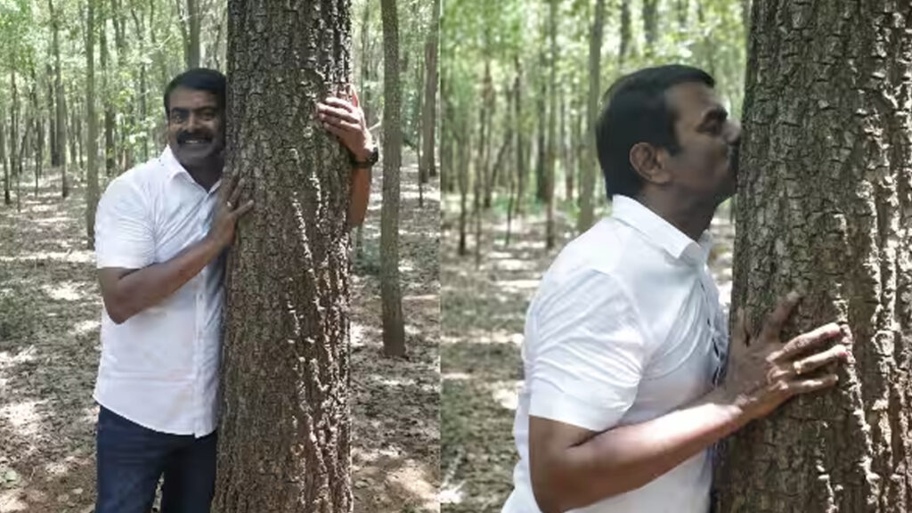 மரங்களுக்கு முத்தம் கொடுத்து மாநாட்டை அறிவித்தார் சீமான்!