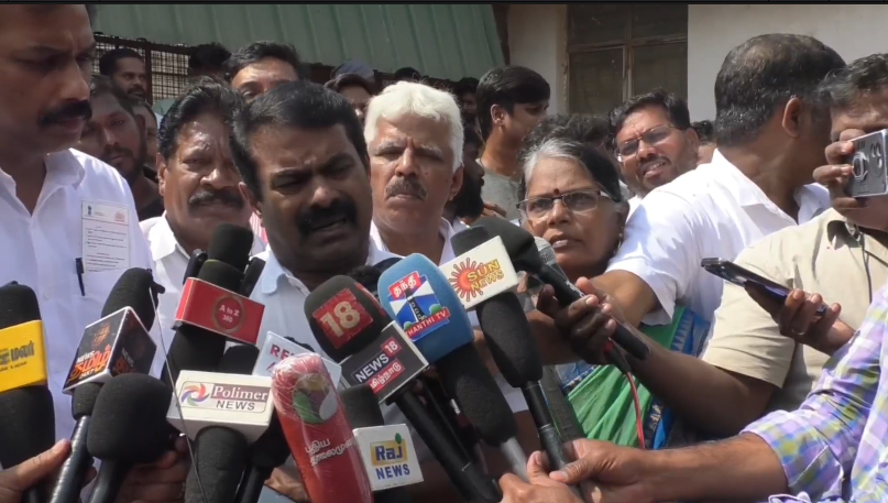 புரட்சி தமிழகம் கட்சி மற்றும் பறையர் பேரவை தலைவர் ஏர்போர்ட் மூர்த்தி கடந்த செப்டம்பர் மாதம் சென்னை டி.ஜி.பி. அலுவலகம் அருகே விடுதலை சிறுத்தைகள் கட்சி நிர்வாகிகளை தாக்கிய புகாரில் கைது செய்யப்பட்டு புழல் சிறையில் அடைக்கப்பட்டுள்ளார். இவர் மீது குண்டர் சட்டமும் போடப்பட்டுள்ளது. இந்த நிலையில் புழல் மத்திய சிறையில் அடைக்கப்பட்டுள்ள ஏர்போர்ட் மூர்த்தியை நாம் தமிழர் கட்சி தலைமை ஒருங்கிணைப்பாளர் சீமான் சிறையில் சந்தித்து பேசினார். சிறையில் அடைக்கப்பட்டுள்ள நிலையில் சிறை அதிகாரிகள் அவரை நடத்தும் முறைகள் குறித்தும் அவரது உடல்நலம் குறித்தும் சீமான் கேட்டு கேட்டறிந்தார். தொடர்ந்து சிறை வாயிலில் செய்தியாளர்களை சந்தித்த சீமான், ஏர்போர்ட் மூர்த்தி நிகழ்வை பார்த்த அனைவருக்கும் அங்கே என்ன நடந்தது என தெரியும் என்றும், தாக்குவதற்காக வந்து சுற்றி வளைத்த போது வழி இல்லாமல் தன்னை தற்காத்துக் கொள்ள ஏர்போர்ட் மூர்த்தி சண்டையிட்டதாகவும், இந்த விவகாரத்தை இவ்வளவு பெரிதாக்குவார்கள் என யாரும் எண்ணிப் பார்க்கவில்லை எனவும், இந்தியாவின் எடுத்திருப்போம் என்றும், அவசர அவசரமாக அவரை கைது செய்து குண்டர் சட்டத்தில் அடைந்துள்ளதாக தெரிவித்தார். முகநூலில் பதிவிடுவது பேசுவது அரசுக்கு எதிராக கருத்து பதிவிடுவது என்றாலே குண்டர் சட்டத்தில் அடைக்கிறார்கள் என்றும், கொலை குற்றவாளிகள் கூட 30 நாட்களிலேயே திரையில் இருந்து வெளியே வந்து விடுவதாகவும், தங்களை எதிர்த்துப் பேசுவோர் சிறையில் அடைக்க வேண்டும் என எண்ணையில் கொடுமைப்படுத்துவதாக தெரிவித்தார். பொய்யாக பழிவாங்குவதற்காக புனையப்பட்ட வழக்குகள் என தெரிந்தும் நீதிபதிகள் அறிவுறுத்தல் குழு எதற்கு என்று சீமான் கேள்வி எழுப்பினார். திட்டமிட்டு குரல்வலையை நெரிப்பதற்கு செயல்பாடுகளை முடக்குவதற்காகவும் அரசியல் திட்டமிட்ட பழிவாங்கல் என தெரிவித்தார். வாராகி வலைவலி பக்கத்தை திறக்க திட்டமிட்டபோது அதிகாலை நேரத்தில் அவரையும் கைது செய்து பழிவாங்குகிறார்கள் என குற்றம் சாட்டினார். அனைவரும் சட்டத்திற்கு கட்டுப்பட்டு நடந்தால், திமுக ஆட்சியில் உள்ள காவல்துறை அதிகாரிகள் சட்டத்தை மீறி, சட்டத்தின் எல்லையைத் தாண்டி அரசு கூறுவதை மட்டுமே செய்கிறது என சாடினார். தமிழ்நாட்டில் போதை கலாச்சாரத்தை உருவாக்கி விட்டு, இளைஞர்களை சிறையில் அடைத்து அவர்களது எதிர்காலத்தை அரசு பாழாக்குவதாக குற்றம் சாட்டினார். நல்ல நாட்டை உருவாக்கும் சிற்பிகளின் செயல் இதுதானா என வினவினார். விஜய் புதுச்சேரிக்கு மாநில அந்தஸ்து தர வேண்டும் என்று கோரிக்கை விடுத்தது பற்றிய கேள்விக்கு, தவெக தலைவர் விஜய், ரங்கசா