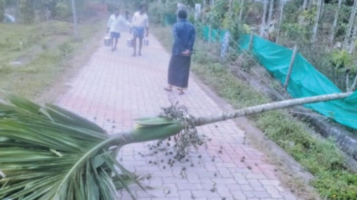 வனத்தை ஒட்டியுள்ள புத்தூர் வயல் பகுதியில் இன்று அதிகாலை சுமார் 1 மணி அளவில், ஒற்றைக் காட்டு யானை ஒன்று குடியிருப்பு மற்றும் விவசாய நிலப் பகுதிக்குள் அத்துமீறி நுழைந்தது. அங்கே இருந்த ஒரு பாக்குமரத்தை யானை தனது பலத்தால் தள்ளிச் சாய்த்தது. துரதிர்ஷ்டவசமாக, அந்தப் பாக்குமரம், புத்தூர் வயல் பகுதியில் இருந்து மகாவிஷ்ணு கோயில் செல்லும் சாலையின் குறுக்கே சென்று கொண்டிருந்த மின் கம்பி மீது நேராக விழுந்தது.