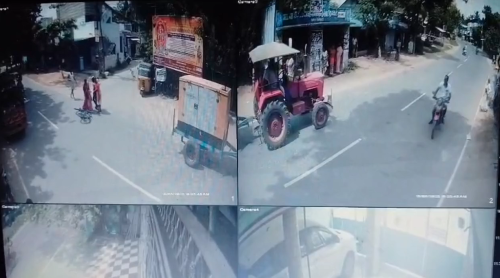 மயிலாடுதுறை மாவட்டம் செம்பனார்கோவில் அருகே உள்ள காளகஸ்திநாதபுரம்  கிராமத்தில் மயிலாடுதுறையில் இருந்து தரங்கம்பாடி செல்லும் பிரதான சாலையில் இன்று காலை 10 வயது சிறுவன் சாலையை கடக்கும் போது ஏற்பட்ட விபத்தில் நூலிழையில் தப்பிய சிசிடிவி காட்சிகள் வெளியாகியுள்ளன. தரங்கம்பாடி தாலுகா காளகஸ்திநாதபுரம் கிராமத்தை சேர்ந்த பத்மநாபன் மகன் பிரணவ் என்ற 10 வயது சிறுவன் தனது சைக்கிளில் காற்று பிடிப்பதற்காக மயிலாடுதுறையில் இருந்து தரங்கம்பாடி செல்லும் பிரதான சாலையை கடக்கும் போது செம்பனார்கோவில் பகுதியில் இருந்து தரங்கம்பாடி நோக்கி அதிவேகமாக சென்ற இரு சக்கர வாகனத்தால் நிலை தடுமாறிய சிறுவன் பிரணவ் சாலையின் நடுவே தனது சைக்கிளுடன் கீழே விழுந்தார். அதிக கனரக வாகனங்கள் செல்லும் சாலையில் சிறுவன் கீழே விழுந்த நேரத்தில் வாகனங்கள் செல்லாததால் பேருந்துக்காக காத்திருந்த பயணிகள் பொதுமக்கள் அந்த சிறுவனை பத்திரமாக மீட்டனர். இதனால் எந்தவொரு அசம்பாவிதமும் ஏற்படாமல் தவிர்க்கப்பட்டது. சிறுவன் நூலிழையில் தப்பிய சிசிடிவி காட்சி சமூக வளைதளங்களில் வைரலாக பரவி வருகிறது. மேலும் இது போல் அப்பகுதியில் அதிக விபத்துக்கள் நடப்பதாகவும் அங்கு வேகத்தடை அமைக்க மாவட்ட நிர்வாகம் நடவடிக்கை எடுக்க வேண்டும் என்று பொதுமக்கள் கோரிக்கை விடுத்துள்ளனர்.