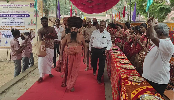 பத்தாம் வகுப்பு மற்றும் பன்னிரண்டாம் வகுப்பு பொதுத் தேர்வு எழுதும் மாணவ மாணவிகள் பெற்றோர்களுக்கு பாத பூஜை செய்து ஆசிரியர்களிடம் ஆசிர்வாதம் பெறும் ஆசிர்வாத திருநாள், மயிலாடுதுறை அருகே குருஞானசம்பந்தர் மேல்நிலைப் பள்ளியில் நடைபெற்றது:-