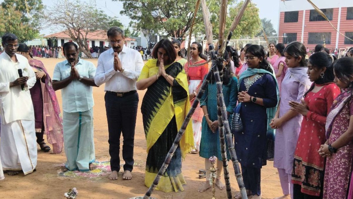 கொண்டாட்டத்தின் ஒரு பகுதியாக, பள்ளி மைதானத்தில் வரிசையாகப் புதுப்பானைகள் வைக்கப்பட்டு, மாவிலை மற்றும் இஞ்சிக் கொத்துகள் கட்டப்பட்டு மங்கலமாகக் காட்சி அளித்தன. பள்ளி மாணவ, மாணவியர் ஒன்றிணைந்து பாரம்பரிய முறைப்படி தீ மூட்டி, பால் பொங்கி வரும் வேளையில் “பொங்கலோ பொங்கல்” என்று உற்சாக முழக்கமிட்டு பொங்கலிட்டனர். விழாவிற்கு வந்திருந்த மாணவர்கள் அனைவரும் தமிழகத்தின் அடையாளமான வேட்டி, சட்டை அணிந்தும், மாணவியர் வண்ணமயமான பாவாடை தாவணி மற்றும் பட்டுப் பாவாடை அணிந்தும் வந்து விழாவிற்குப் பெருமை சேர்த்தனர்.