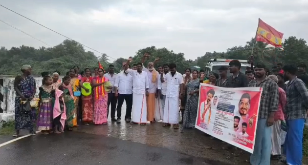 சீர்காழி அருகே புங்கனூர் கிராமத்தில் பொதுமக்களுக்கு விநியோகிக்கப்படும் குடிநீர் உப்பு நீராக வருவதால் நல்ல குடிநீர் விநியோகம் செய்திட வலியுறுத்தி தமிழக வெற்றி கழகம் சார்பில் மாவட்ட செயலாளர் கோபிநாத் தலைமையில் ஒன்றிய செயலாளர் கமல்நாத் மணிவேல் உள்ளிட்ட கட்சியினர் சாலையில் அமர்ந்து ஆர்ப்பாட்டம் நடத்தினர்.